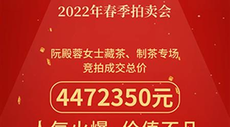 萬眾矚目的“陳年普洱及佳茗”成交喜人,中國嘉德2022春季拍賣會阮殿蓉女士藏茶、制茶拍賣專場總攬4472350元。